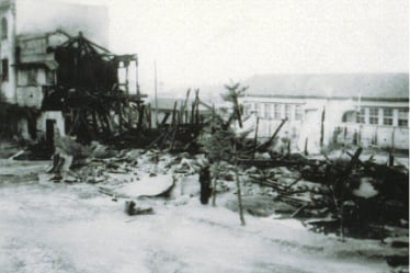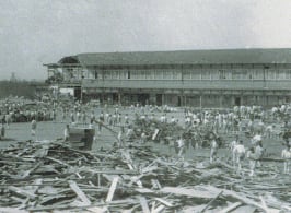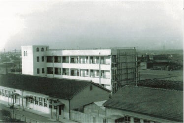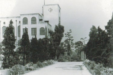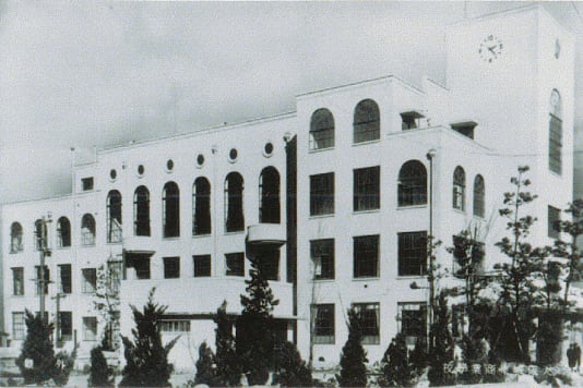 第一室戸台風による被害を受け、全校総出で倒壊校舎を整理しました。本館復興に対して学債を発行するという新機軸を打ち出し、1935(昭和10)年にひときわ鮮やかな鉄筋コンクリート4階建ての新校舎が完成しました。