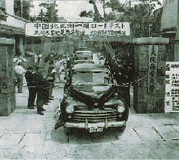 幼稚園の送迎バスの運転を担当していた大阪商業大学自動車クラブ部員が、九州水害地へ衣類や日用品などの救援物資を輸送。産学協働による社会貢献活動の先駆けでした。