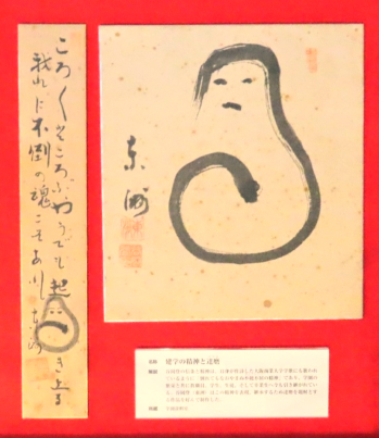 信条の「倒れてもなおやまぬ不撓不屈の精神」を表現した達磨をモチーフにした作品。